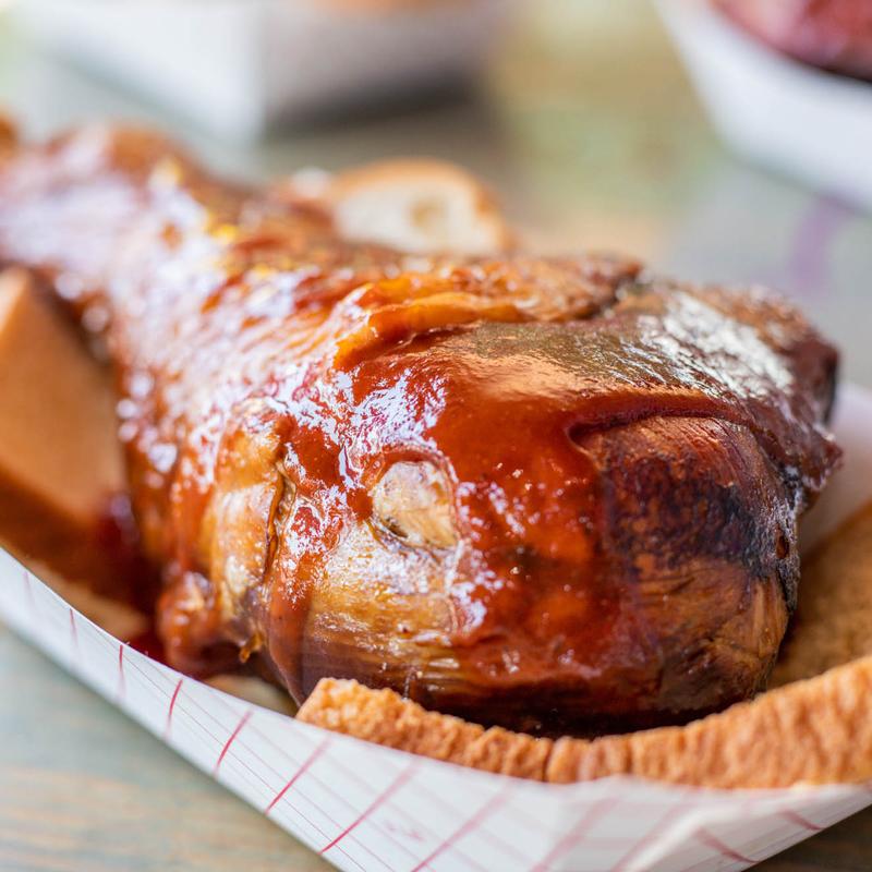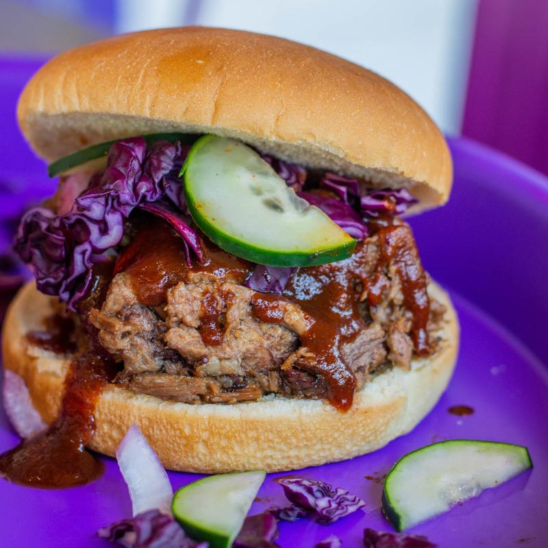 Walking into the purple pig makes your nose excited to be there. The bar-b-que was delicious, the sausage with sweet sauce was great too. Green beans, potato salad and sweet corn was the perfect sides. …